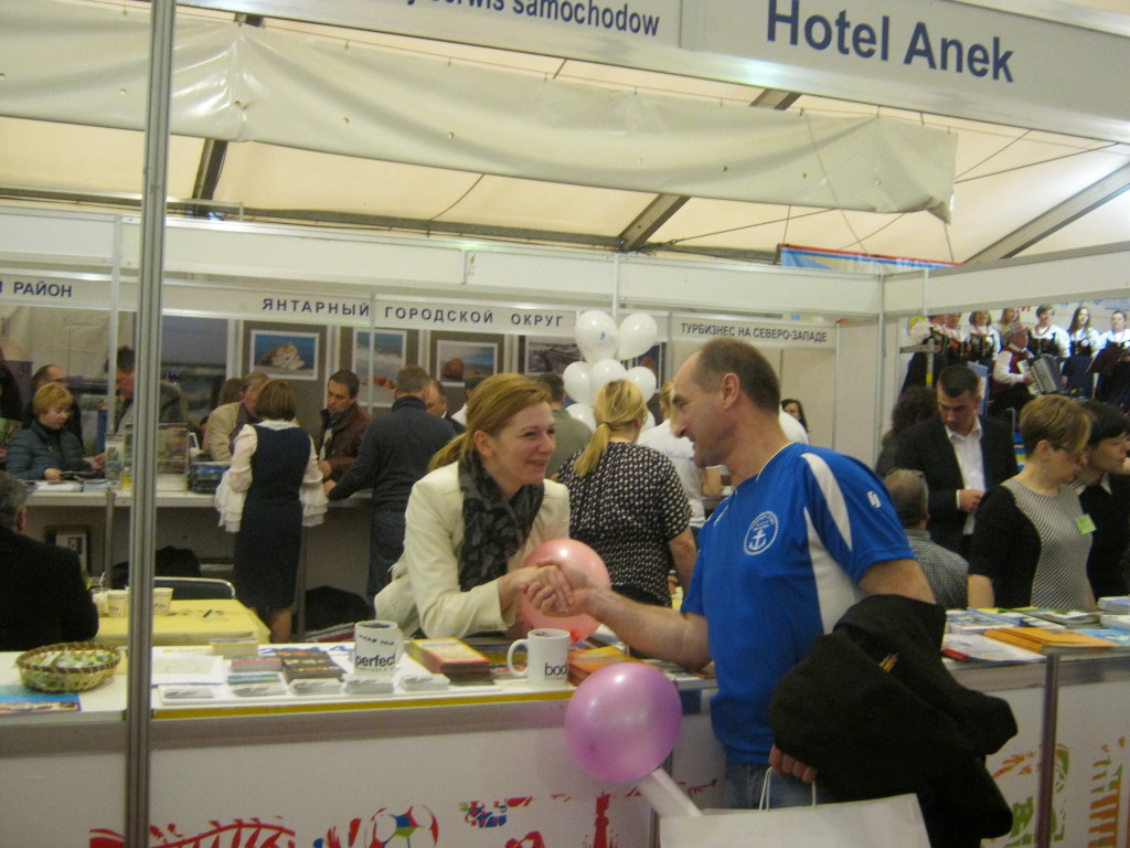 Dużym zainteresowaniem cieszył się konkurs wiedzy historycznej i krajoznawczej, którego adresatem byli studenci uczelni rosyjskich zorganizowany w ramach polsko-rosyjskiego projektu p.t. „Podniesienie atrakcyjności północno-wschodniej Polski oraz Obwodu Kaliningradzkiego poprzez rozwój i promocję wspólnych tras turystycznych”, realizowanego przez Stowarzyszenie Gmin Polskie Zamki Gotyckie. Partnerem projektu, współfinansowanego z Programu Współpracy Transgranicznej Litwa – Polska – Rosja 2007-2013, jest Departament Turystyki Urzędu Marszałkowskiego Województwa Warmińsko-Mazurskiego. W czasie targów odbyło się spotkanie robocze z udziałem Pani Mariny Agejewej – Ministra Turystyki Rządu Obwodu Kaliningradzkiego i Pani Doroty Zalewskiej – Dyrektora Departamentu Turystyki Urzędu Marszałkowskiego Województwa Warmińsko-Mazurskiego. Rozmowy dotyczyły bieżących działań międzyregionalnych oraz planu pracy w zakresie turystyki przygranicznej pomiędzy Ministerstwem Turystyki Rządu Obwodu Kaliningradzkiego i Departamentem Turystyki na lata 2015 – 2016. Pragniemy wszystkim podziękować za bardzo dobrą współpracę oraz mamy nadzieję, że przyszłoroczna edycja będzie tak samo udana.
